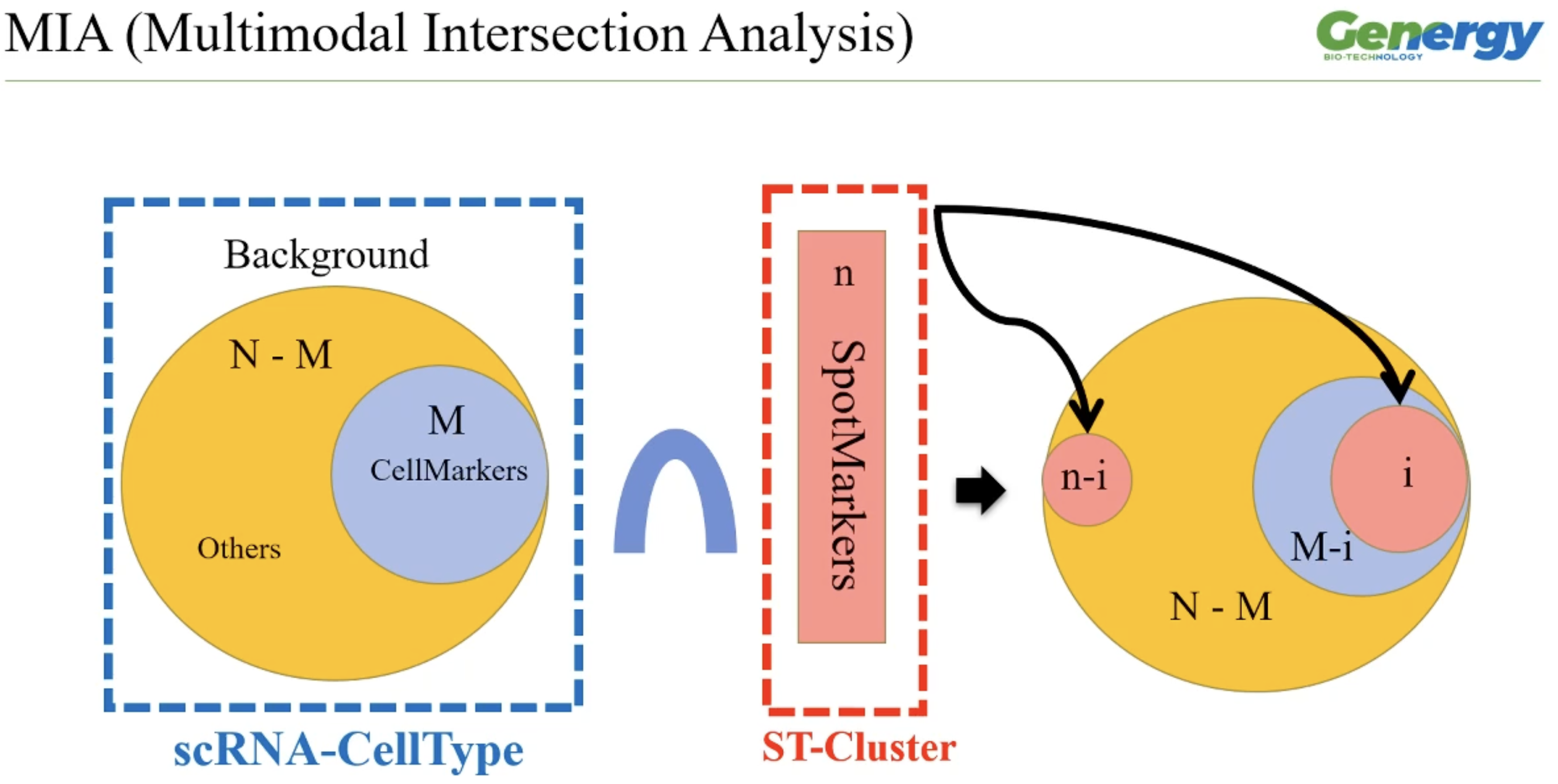 在《Nature Biotechnology》的2020年七月刊上,一偏研究胰腺导管癌的研究性文章《Integrating microarray-based spatial transcriptomics and single-cell RNA-seq reveals tissue architecture in pancreatic ductal adenocarcinomas 》一文首次提出了用MIA的方法来做单细胞和空间转录组的关联分析的思路